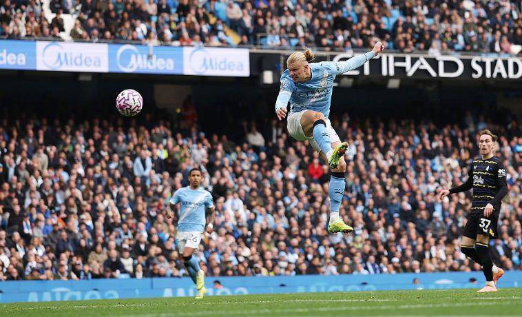 仅仅过了5分钟,哈兰德就再次攻破了皮克福德的十指关,萨维尼奥左路拿球后,做给了中路埋伏的哈兰德,挪威魔人不停球低射建功,帮助曼城把领先的优势扩大到了2球,上演梅开二度的哈兰德,也把自己的英超进球数提升到了96球,超越曼联传奇范尼排名历史第37位,比赛最后时刻,哈兰德错失多个戴帽良机,但并不影响曼城收获一场胜利。